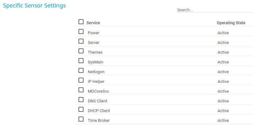 This sensor uses the LAN Manager Management Information Base (MIB) service table (LanMgr-Mib-II-MIB) to discover the available Windows services.